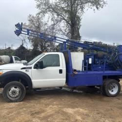 60 HP Diesel Engine 72” Mast Stroke / 10,000 lb. Prince Winch Mast Mounted w/o cable. 5,000 ft/lb. Torque 2-Speed Auger Motor, 2” Hex Output Shaft Direct Push Hammer 5’ Hydraulic Extruder Ford F550 Diesel 2013 Model Crew cab Very Good Condition BONUS: The rig can be raised, the Ford F550 driven out and a Yanmar Crawler Model YFW4 backed under. 8 bolts. Included with the rig Price: $74,500.00 For more information please contact Steve at 936-581-8904 or swhite75862@gmail.com